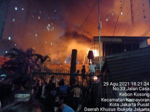 Sebanyak 21 unit pemadam kebakaran (damkar) dikerahkan untuk memadamkan api di rumah penduduk Gang Swadaya Kebon Kosong, Kemayoran, Jakarta Pusat, pada Minggu malam. “Terjadi kebakaran pada rumah tinggal pukul 18.15 di Jalan Swadaya Kelurahan Kebon kosong Kecamatan Kemayoran Jakarta Pusat,” kata Kasudin Gulkarmat Jakarta Pusat Asril Rizal di Jakarta, Minggu. Kebakaran yang terjadi sejak pukul 18.15 WIB itu sudah ditangani oleh petugas dan dilakukan pendinginan sejak pukul 19.22 WIB. Ada pun objek terbakar adalah rumah penduduk dengan jenis bangunan rendah. Setidaknya 84 personil dilibatkan untuk memadamkan “si jago merah”. Salah satu warga di Kompleks Angkasa Pura, Resty (29), mengaku mendengar teriakan tetangga adanya kebakaran, usai salat Magrib. “Habis salat Magrib di depan rumah, tetangga ada yang teriak kebakaran, pas saya keluar, asapnya sudah membumbung tinggi. Sekitar jam setengah tujuh tadi,” kata Resty. Akibat kebakaran itu, rumahnya yang berjarak 500 meter dari lokasi kebakaran pun saat ini dilakukan pemadaman listrik. Hingga berita ini diturunkan, setidaknya ada tiga lokasi yang dilakukan pemadaman listrik akibat kebakaran tersebut, yakni di area perumahan Kompleks Angkasa Pura, Jalan Kebon Kosong XII dan Jalan Kemayoran Gempol.kondisi terkini saat ini pukul 21.21 sudah selesai pemadaman. |