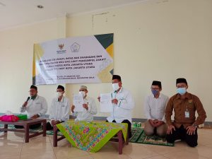 Acara Sosialisasi Zakat, Infaq, Shadaqah & Amal Sosial dan Penandatanganan Mou Pembentukan Unit Pengumpul Zakat BAZNAS (BAZIS) Kota Administrasi Jakarta Utara dengan Dewan Pengurus Cabang Forum Komunikasi Diniyah Takmiliyah (DPC-FKDT), yang dilaksanakan di Aula Dakwah Center Kelurahan Koja, Kecamatan Koja, pada hari Selasa, 31 Agustus 2021.