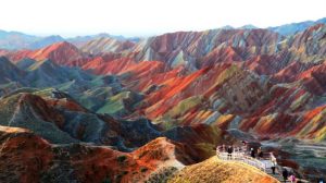 Gunung pelangi Zhangye Danxia terletak di kota terpencil di Provinsi Gansu, sebelah utara China yang telah dinobatkan sebagai taman nasional. Sesuai dengan namanya, gunung pelangi Zhangye Danxia memiliki corak garis-garis berwarna-warni yang serupa dengan pelangi.