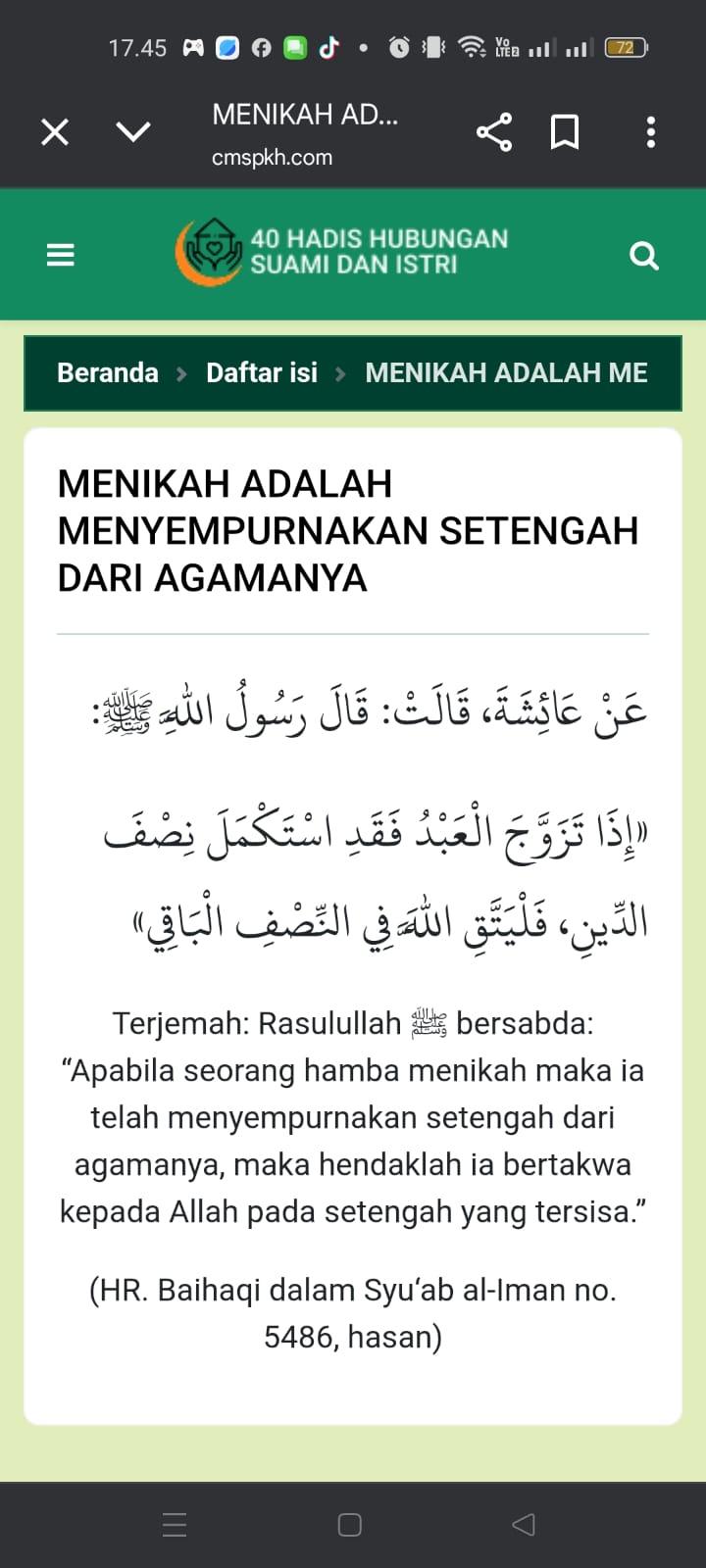 40 Hadis yang menjelaskan etika dalam hubungan antara suami dan istri lengkap dengan terjemah dan kualitas hadisnya