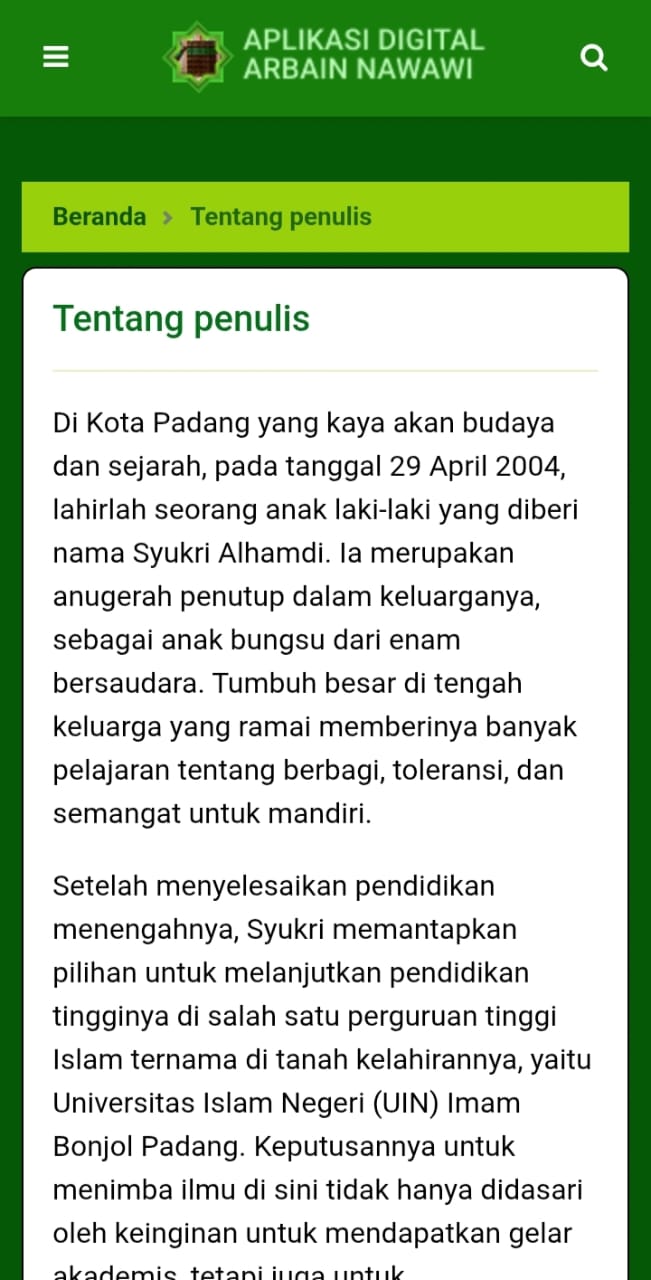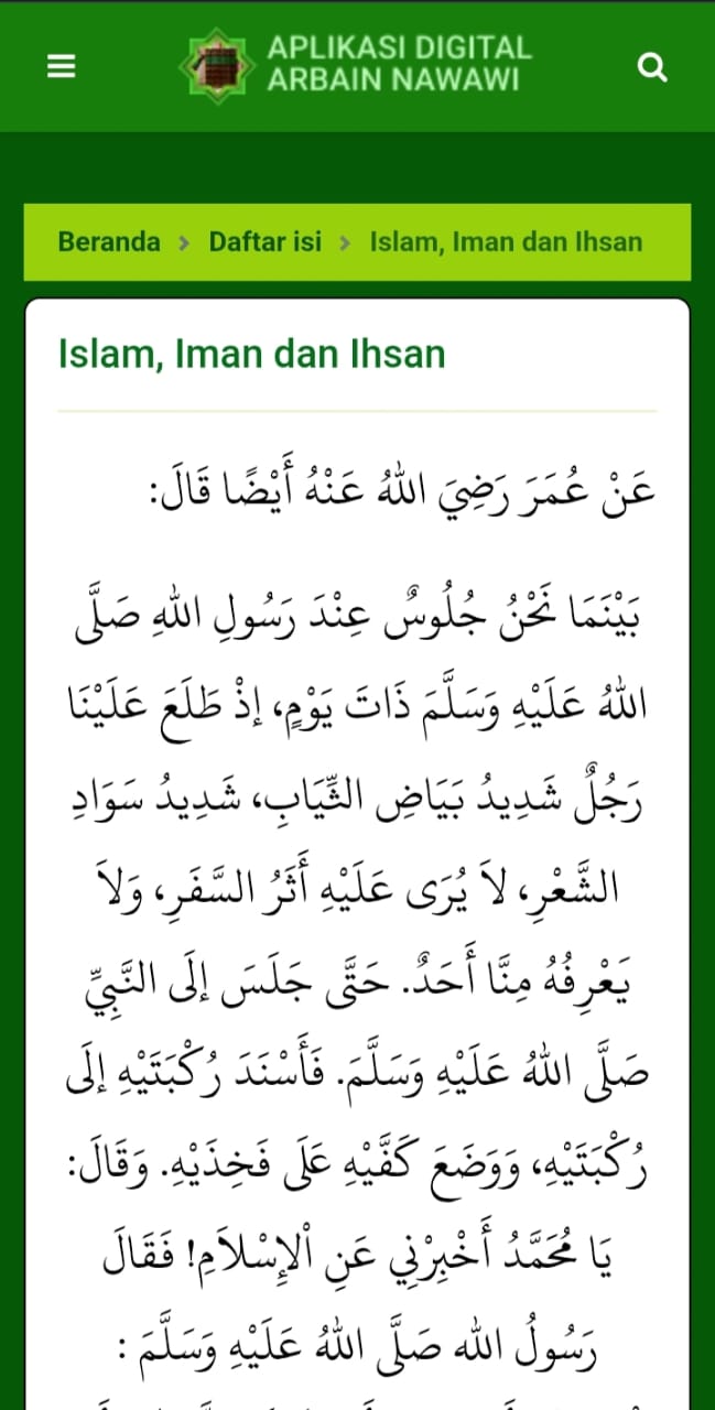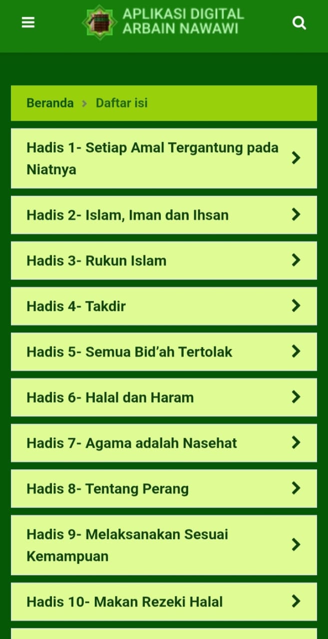 Aplikasi ini berisi 40 hadis yang dipilih oleh Imam Nawawi, Imam Nawawi memilih hadis yang ringkas namun memiliki makna yang luas dan penting dalam berbagai aspek kehidupan seorang muslim. Aplikasi ini membantu memudahkan kita dalam memahami hadis-hadis yang telah dipilih dan dikumpulkan oleh imam Nawawi