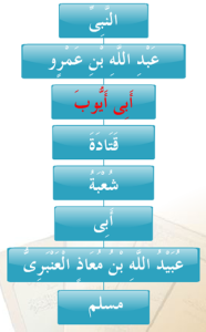 حَدَّثَنَا عُبَيْدُ اللَّهِ بْنُ مُعَاذٍ الْعَنْبَرِىُّ، حَدَّثَنَا أَبِى، حَدَّثَنَا شُعْبَةُ، عَنْ قَتَادَةَ، عَنْ أَبِى أَيُّوبَ – وَاسْمُهُ يَحْيَى بْنُ مَالِكٍ الأَزْدِىُّ، وَيُقَالُ الْمَرَاغِىُّ وَالْمَرَاغُ حَىٌّ مِنَ الأَزْدِ – عَنْ عَبْدِ اللَّهِ بْنِ عَمْرٍو، عَنِ النَّبِىِّ -صلى الله عليه وسلم- قَالَ: